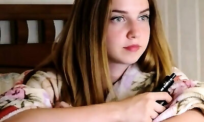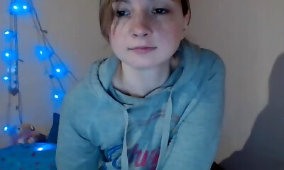 Nineteen year old busty cam girl with innocent face touches her big natural ti